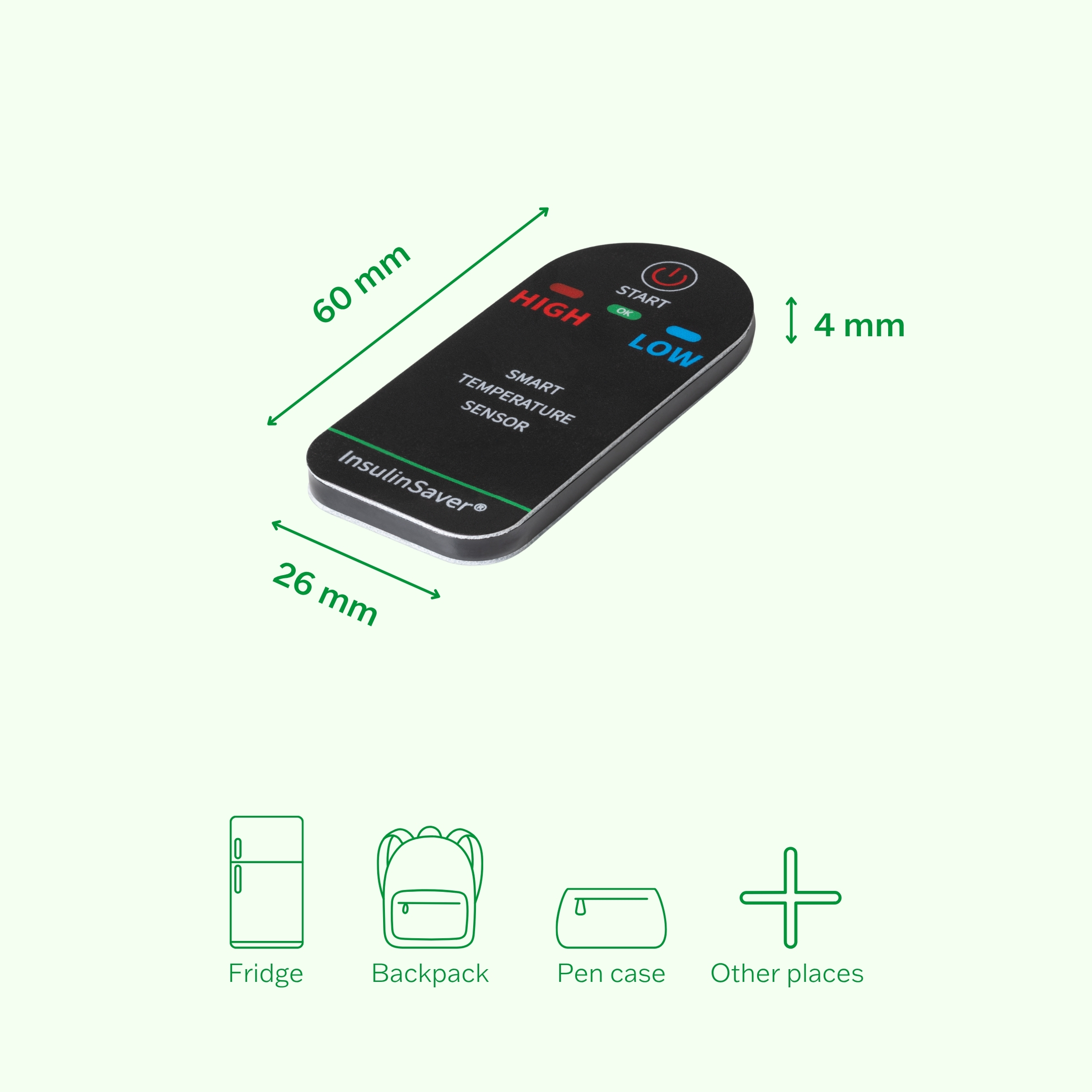 InsulinSaver is a smart temperature device that works all by itself, without cables or apps. The device monitors your insulin and will indicate if it has been exposed to too hot, or too cold temperatures.