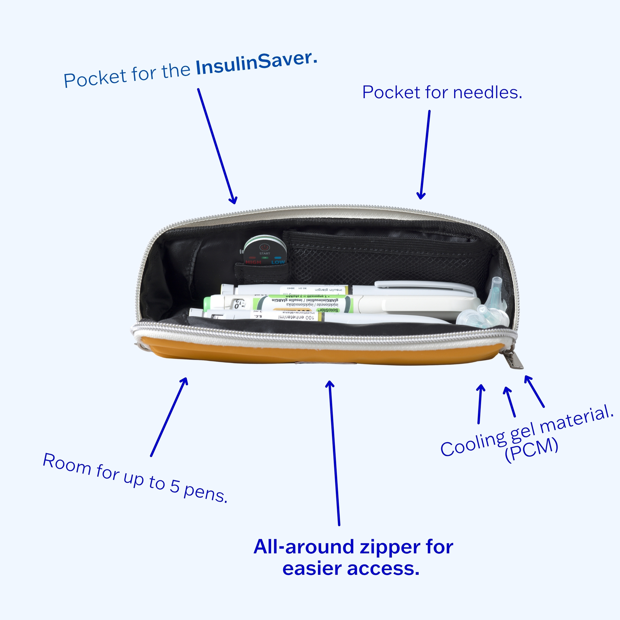 By combining The Bag with our smart temperature sensor, InsulinSaver, you’ll get a self-sufficient, temperature-monitored cooling solution wherever you are.